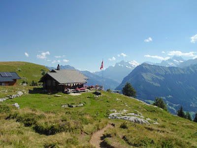 We decided on a hike in an area that we love to end our trip. After breakfast we took the cable car up to Grutschalp again and started our hike from there. We were headed to the Lobhornhutte - it's another small mountain hut where you can get food and drink, or spend the night.